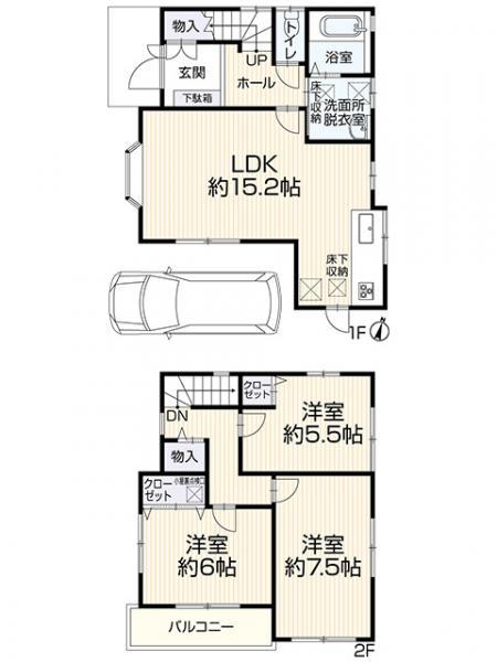 土地:51.86㎡ 建物116.10㎡ 3LDK+車庫付き
